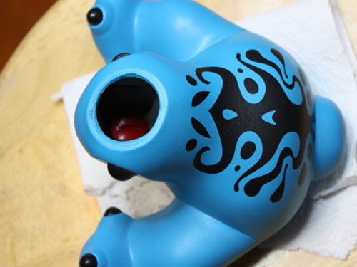 Ditch was also a success in the masking department! I realized early in the process that you could see inside of the figure through his mouth. The inside around the mouth was painted black and a small sculpted tongue was painted red.