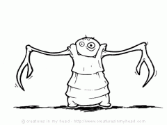 …I never even met the guy. Increatures belly buttoned, blob like, blood splattered, bloody, clawed, grotesque, pointy eared