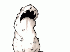 armed, fat belly, open mouth, teeth, uneven eyes