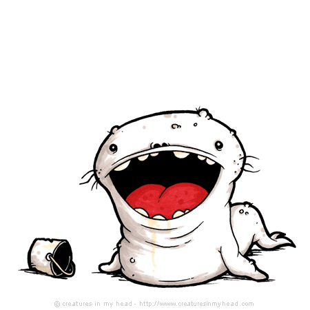 everything’s going to be alright now… Increatures bucket, fins, laughing, red tongue, sea mammal, tail