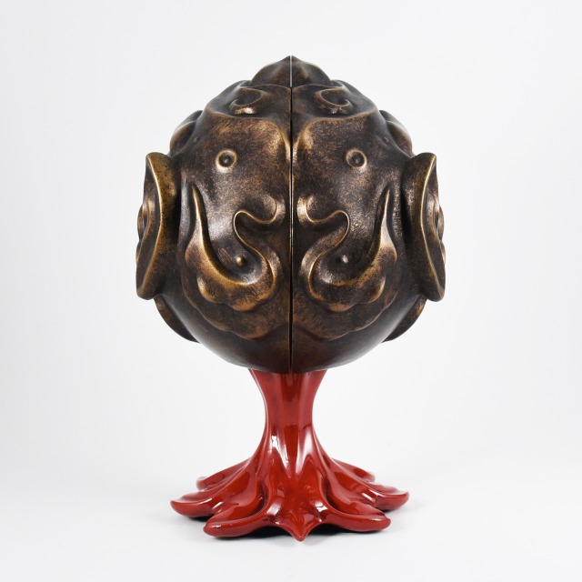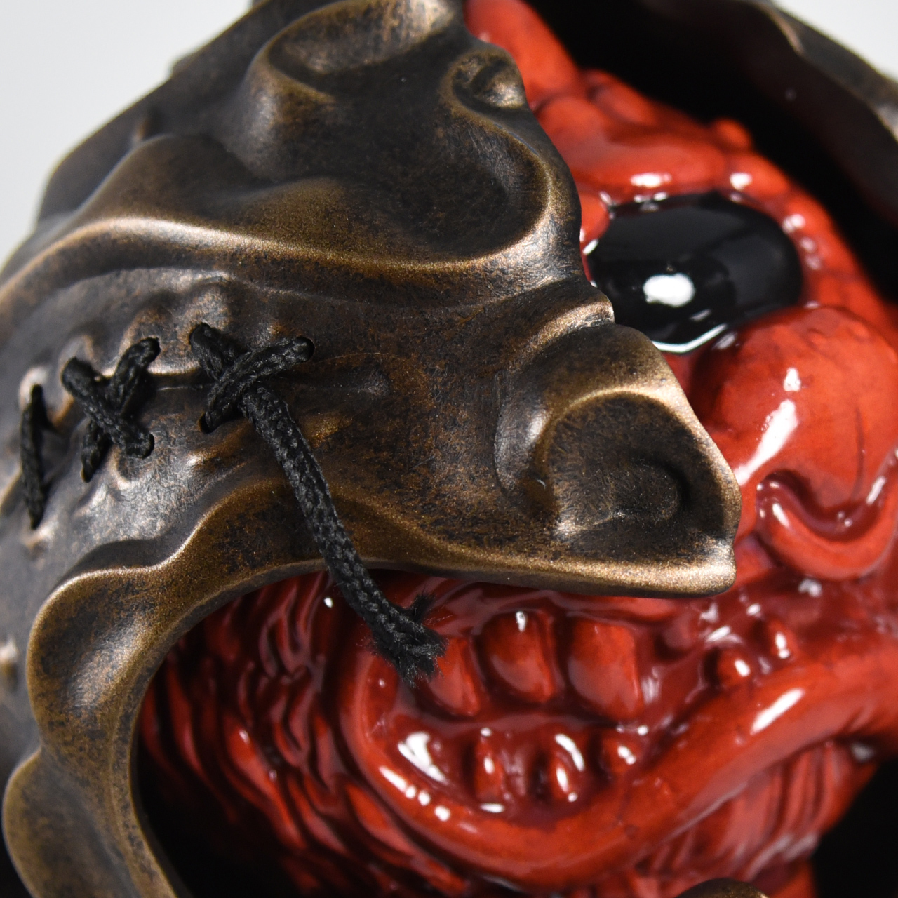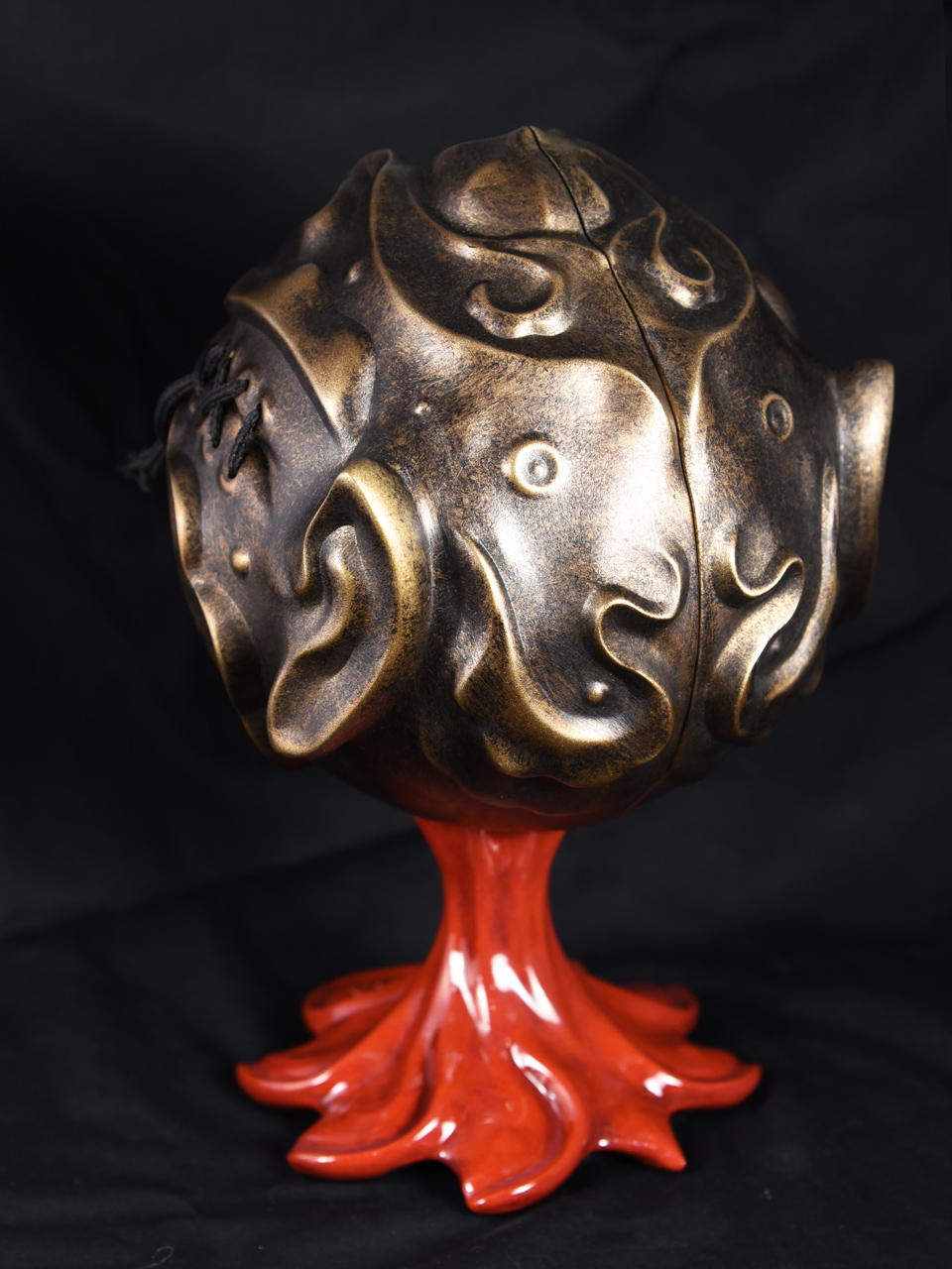 Custom sculpted two-part mask and stand supporting painted vinyl figure. Exhibited as part of the MadBall All-Star Art Jam at Myplasticheart NYC
