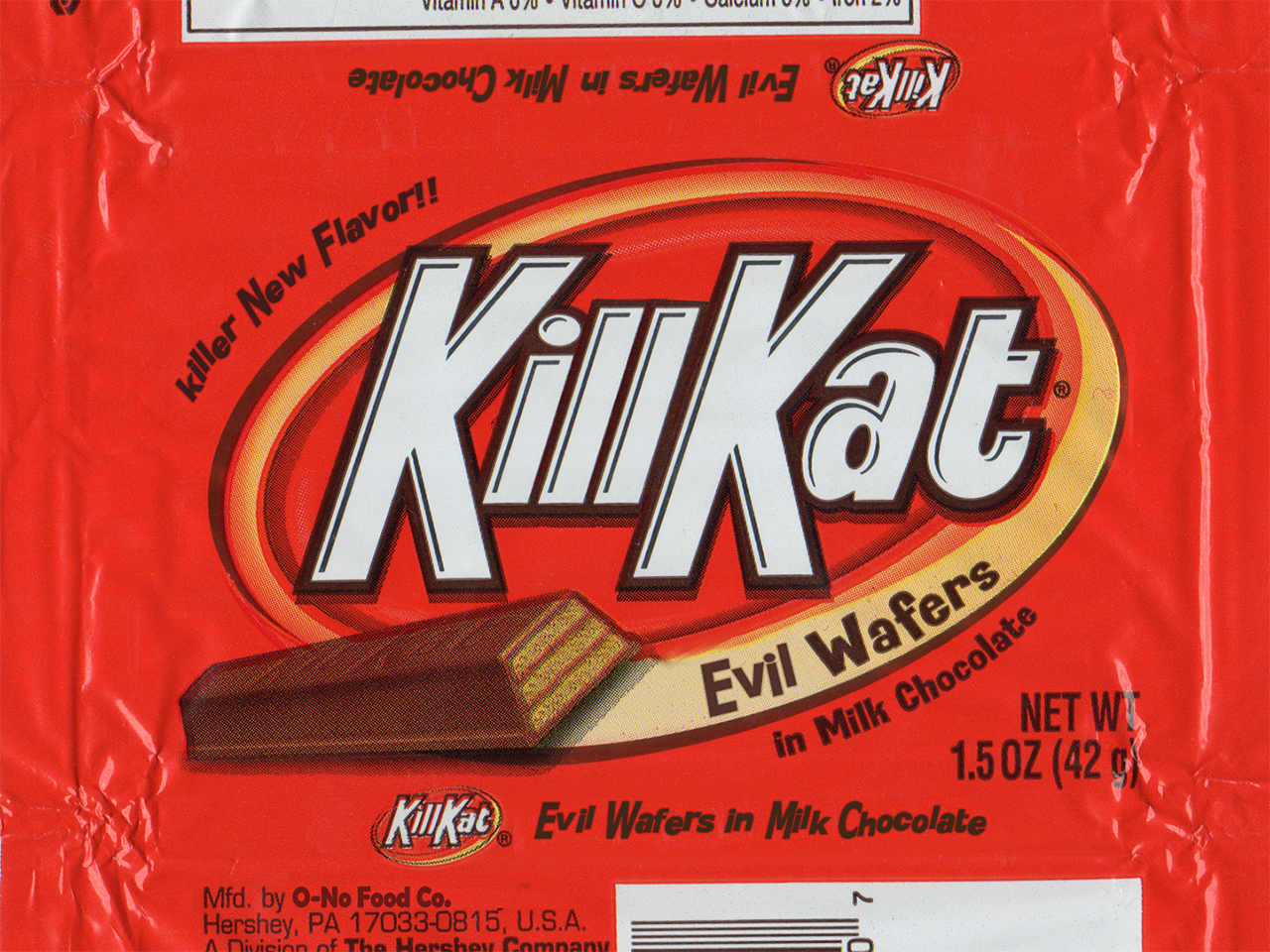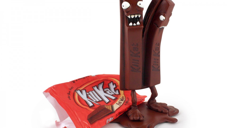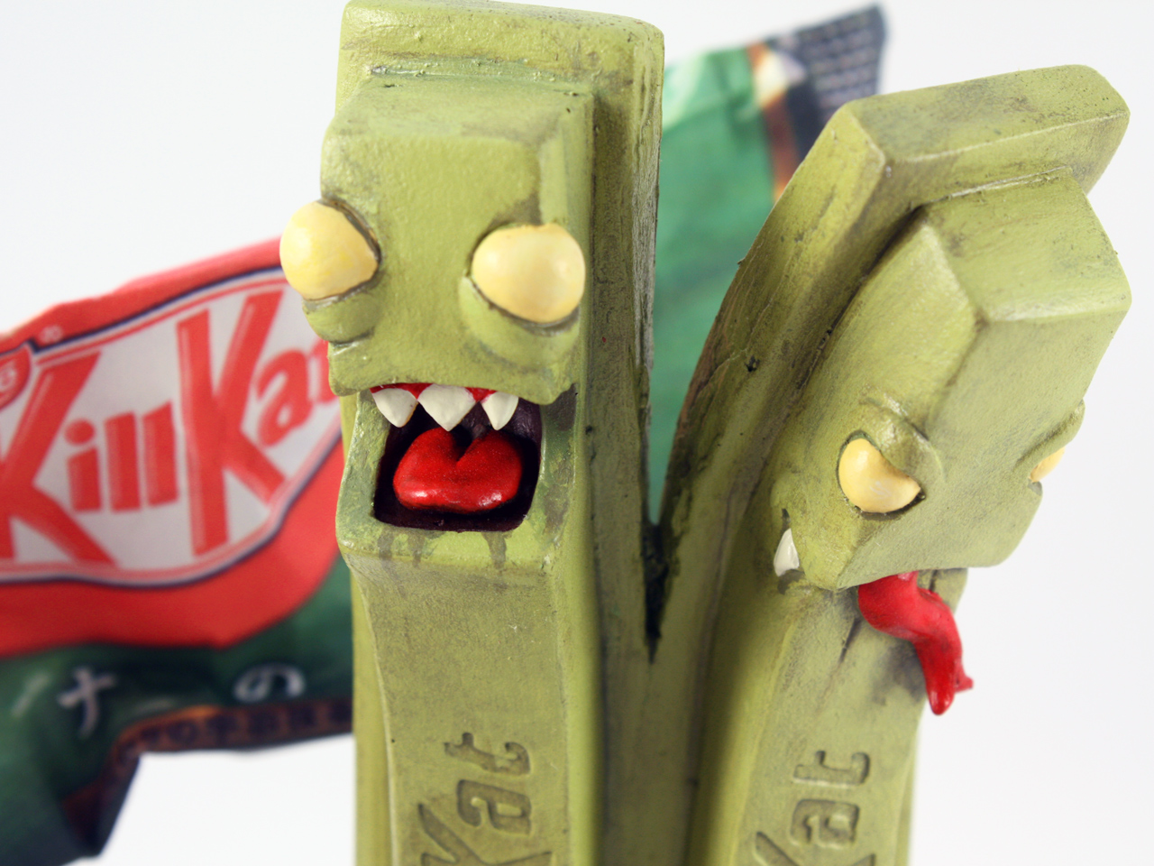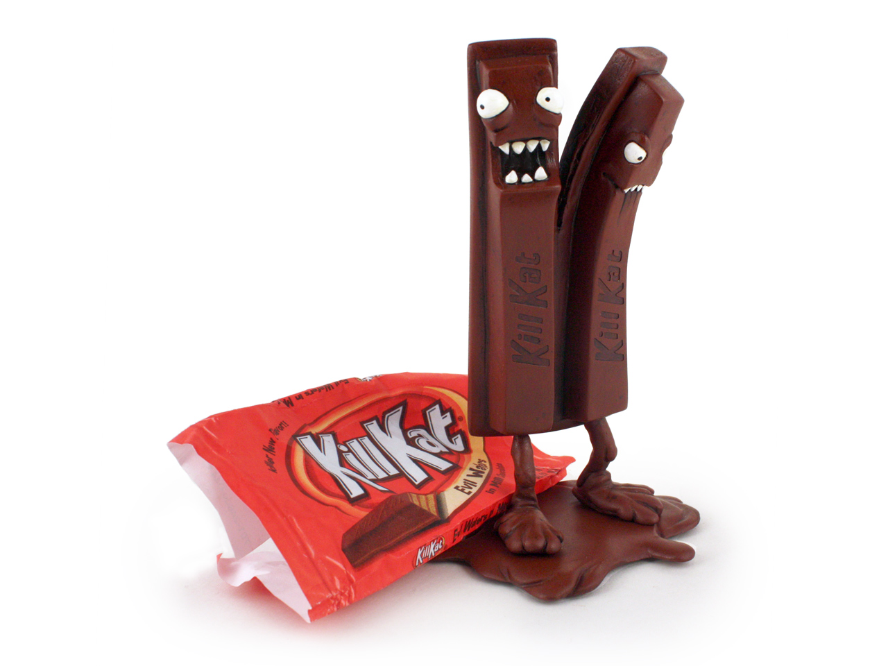 Mmm.. KillKats. Break them in half and share the terror with your friends! These two individual original resin sculptures (in Mostly Evil and Green Tea Terror) started it all!
