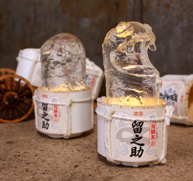 3 different sets included miniature sake barrels, hand made wooden carts, and small lights under clear resin creatures.