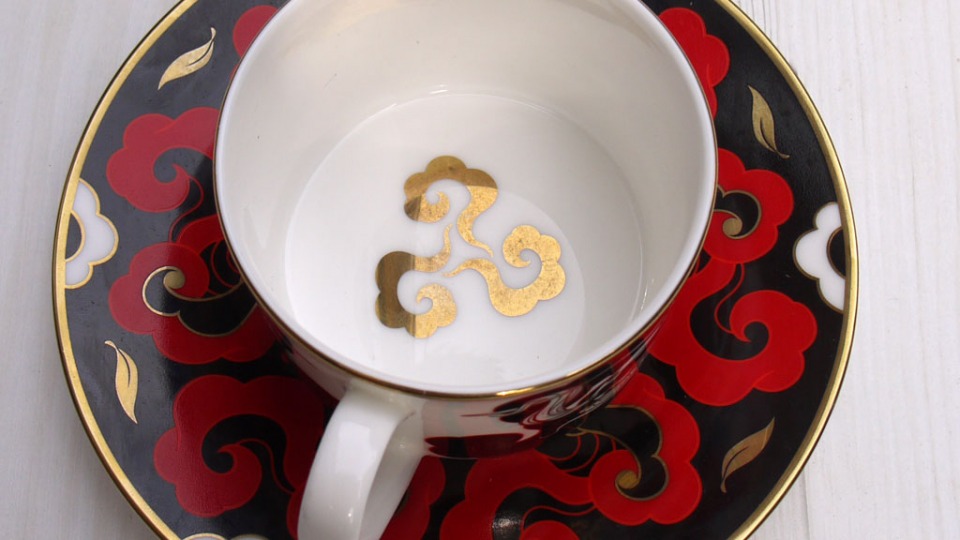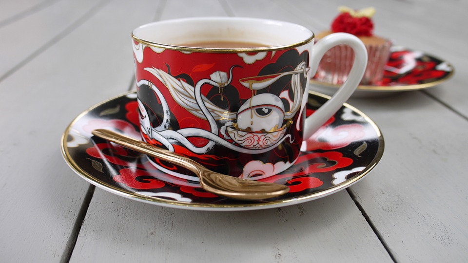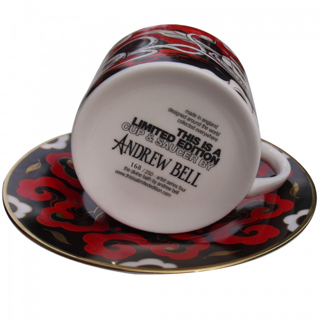 Bone china cup & saucer featuring 24 carat gold accents, made in Stoke-on-Trent, England by ThisIsALimitedEdition. Only 250 were produced, each one was sequentially numbered and included a matching mini print.
