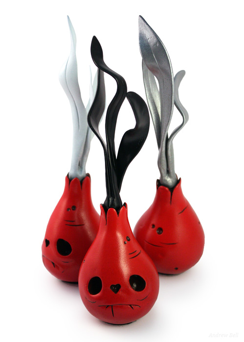 3 resin Skrulb sculptures from the show, 6-7″ tall.