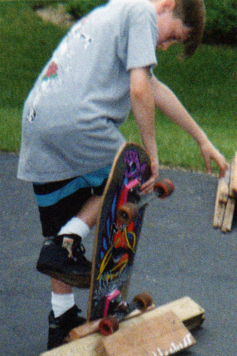 I read up on how to ACTUALLY build a ramp. We built a pretty good 8′ wide, 6′ tall quarter pipe for the driveway, much to the neighbors’ chagrin. A few years later I built a 4′ tall mini halfpipe in my garage.. that was the ultimate. How I miss that miniramp!