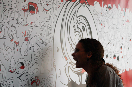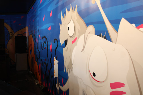 Today we arrived bright and early following an overnight flight from NYC. We got a nice behind the scenes look at the EXIT festival exhibits in mid-construction. Here are a few quick photos from my walls as they are hung and lighting is adjusted…