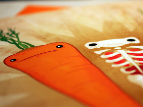 Carrot Skeleton was the Print Club Plus print for May! It’s an edition of 45, 6″x8″ print on ultra smooth fine art cotton rag with decorative corners. A few lucky members will also randomly be getting a black chase print edition of 15! I’ll have a few of the regular ones at MoCCA Artfest this weekend in NYC! The remainders, if any, will go up online next week!